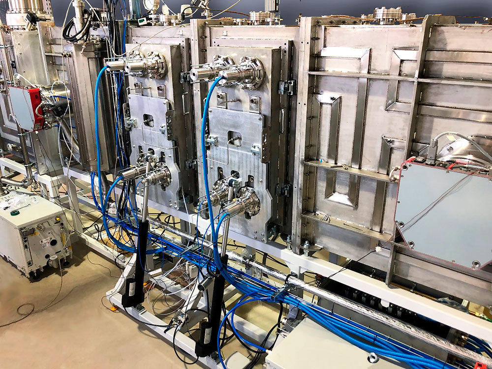 Предусмотрен нагрев подложек на всём пути их следования: от шлюзовой камеры до конца технологической.
